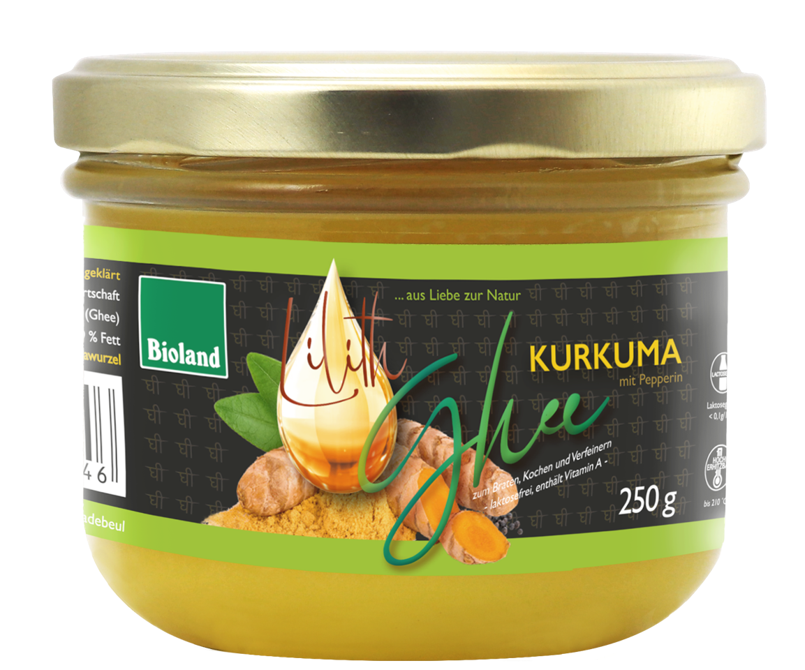 Bio Ghee mit Kurkuma 250 g aus feiner EU-Bio-Frischbutter.